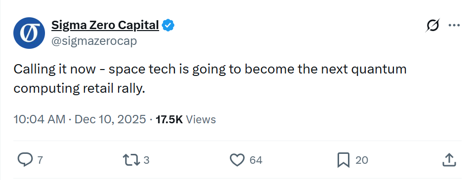 “现在可以断言——太空科技将成为继量子计算之后,下一个散户投资者的狂欢。”
