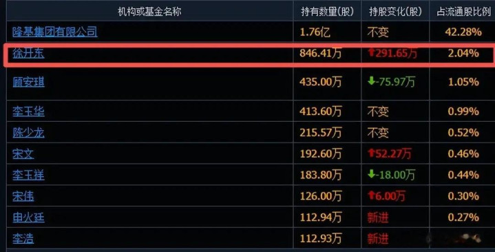 联建光电是徐开东持有时间较短但已停止加仓的标的。他在2024年四季度建仓324.25万股,2025年一季度加仓115.56万股,之后就一直持股不动。